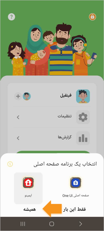 برای ورود به پوسته کودکانه، باید ایمینو رو بهعنوان برنامه اصلی انتخاب کنی.